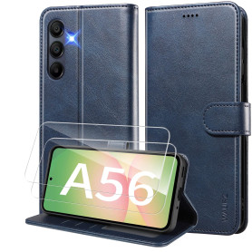WAURZ Coque pour Samsung Galaxy A56 5G Etui Coque avec 2 Verre Trempé Porte Carte Clapet à Rabat Portefeuille Cuir Case Housse P