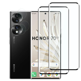 Jinshiweikai Lot de 4, 2 x Verre Trempé pour Honor 70 et 2 x Protection Ecran Caméra Arrière,3D Incurvé Couverture,sans Bulles d