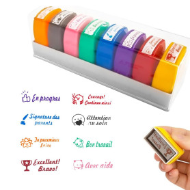 RNPKZ Tampon Encreur Enseignant Français, Lot de 8 Tampon Encreur pour Enfant,Tampons Auto Encreur Tampons Enseignant Maternelle