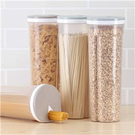 Cet article est une boîte de rangement multifonctionnelle avec un couvercle rotatif, idéale pour conserver les aliments frais plus longtemps. Fabriquée en PP de haute qualité, elle est résistante et étanche.Matériel: PP. - Format: env. 28,7 x 10,5 x 8,5 cm / 11,3 x 4,13 x 3,35 pouces (LxlxH).Permet aux aliments de rester frais plus longtemps; Facile à manipuler avec sa poignée légère.Couvercle pivotant spécial: Contrôle facile du montant d'aliments.Haute qualité: Résistant aux rayures, antiseptique et idéal pour les céréales, pâtes, riz, noix, etc.Parfait pour la cuisine: Un compagnon idéal pour le stockage alimentaire.