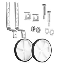 Roues Auxiliaires pour Enfants, Stabilisateur de Roue Réglable, pour Améliorer Sécurité et la Stabilité des Vélos (Blanc)Matériau PP haute résistance: Les roues et les bras de support sont en acier de haute qualité, offrant stabilité et sécurité supplémentaires.Facile à installer: Nos roues d'entraînement se fixent facilement avec des boulons pour une utilisation sécurisée par votre enfant.Réglable: Les roues auxiliaires peuvent s'ajuster en taille pour des vélos de 12 à 20 pouces, offrant une adaptation personnalisée.Bras de support de haute qualité: En plastique et métal de haute qualité, résistant à la rouille pour une stabilité accrue.Spécification: Matériel: Plastique / acier, Couleur: Blanc, Dimensions: env. 24