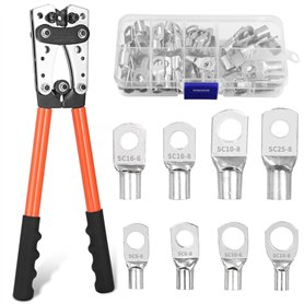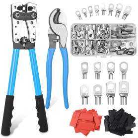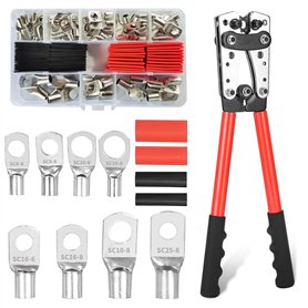 Pince a Sertir,AWG 10-0,6/10/16/25/35/50 mm² pince à sertir cosses avec Bornes à anneau en cuivre +60 PCS de gaine thermorétract