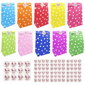 Brevanza 50 pièces pochette cadeau anniversaire enfant avec 84 autocollants, sac bonbon colorés à pois, sachet papier pour embal