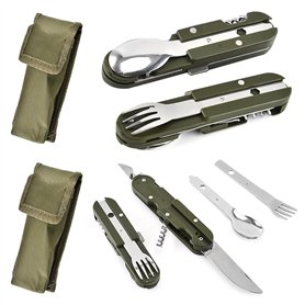 L'ensemble de couverts de camping Aoreun 2PCS en acier inoxydable est idéal pour vos aventures en plein air. Compact et portable, il offre 6 fonctions pratiques pour faciliter vos repas en plein air.Multi-fonctionnel : Les couverts sont interchangeables et comprennent des ouvre-bouteilles de vin et de bière.Haute qualité : Fabriqué en acier inoxydable léger et résistant à la corrosion.Compact et portable : Livré avec un sac de rangement en nylon pour un transport facile.
