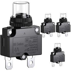 Lot de 4 interrupteurs de puissance 4 A avec protection contre les surcharges thermiques, réinitialisation manuelle des bo.Puissance nominale : Disjoncteur thermique pour 4 A à 125 / 250 VAC / 32 VDC.Utilisation polyvalente : Adapté pour l'automobile, l'industrie, la marine, etc.Réinitialisation manuelle : Bouton poussoir noir avec capuchon étanche pour une protection contre les intempéries.